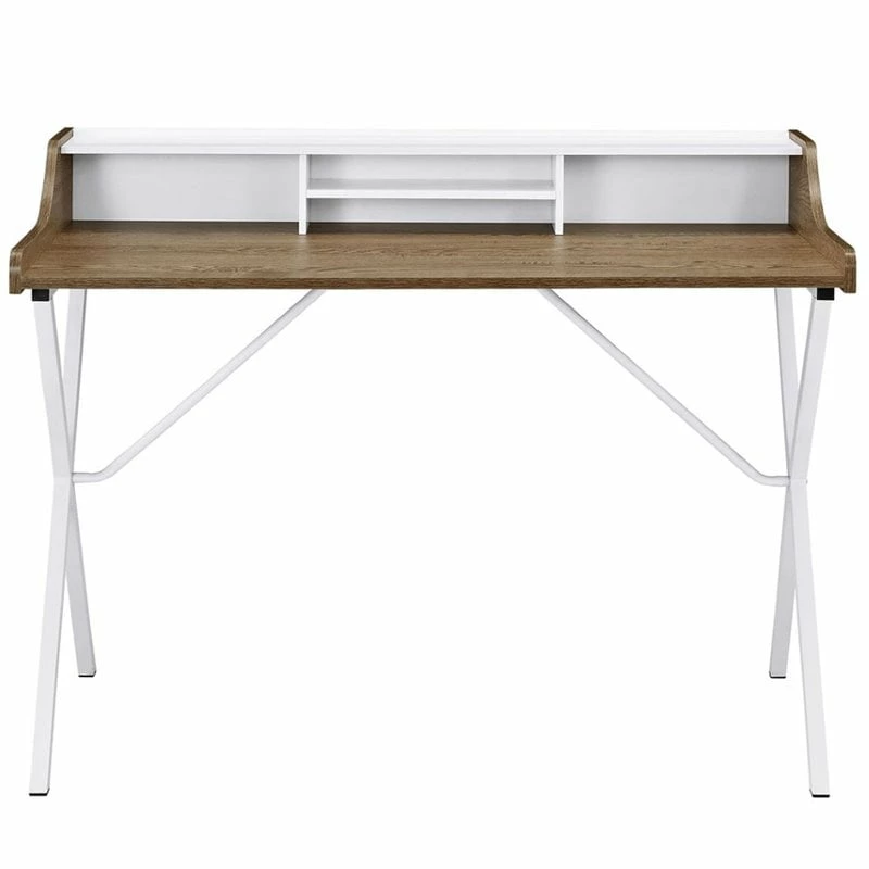 The problem with work desks is that while they do much, they often say little. This desk corrects the issue of desk apathy by helping you keep everything you need in plain sight. Whether you plan to use it to answer your homework, pen diary entries, or embark on other creative pursuits with crafting supplies, you can say goodbye to clunky storage and filing drawers that rarely get used anyway. The desk is constructed with a wood-grained melamine top and a powder-coated white metal A-frame design. A pleasant addition to your contemporary or traditional decor, it also comes with four foot pads to prevent scratching.