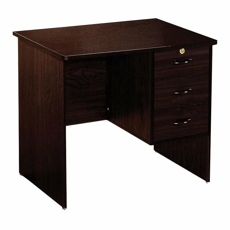 This sturdy wooden constructed computer desk features an compact, sleek and contemporary design. This workstation is complimented with espresso finish. 3 large drawers with lock system on the top one provides ample space for storage. Supported on side panels, it has open space for footrest.
