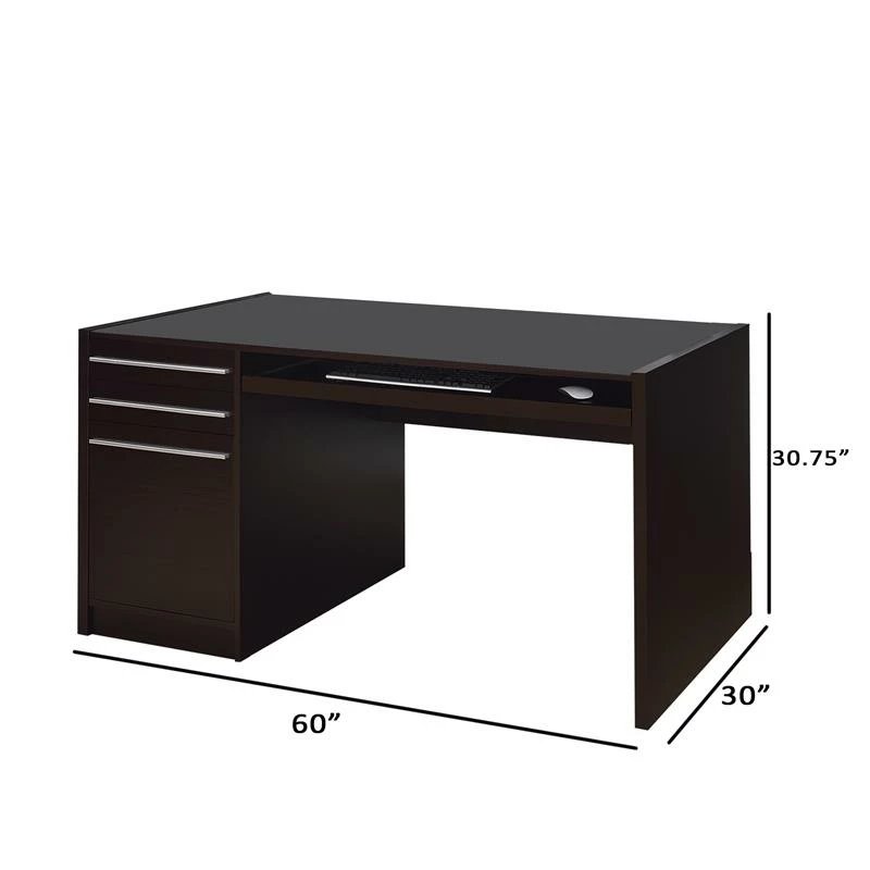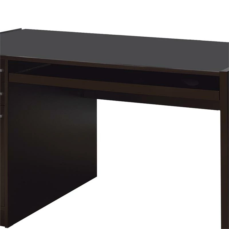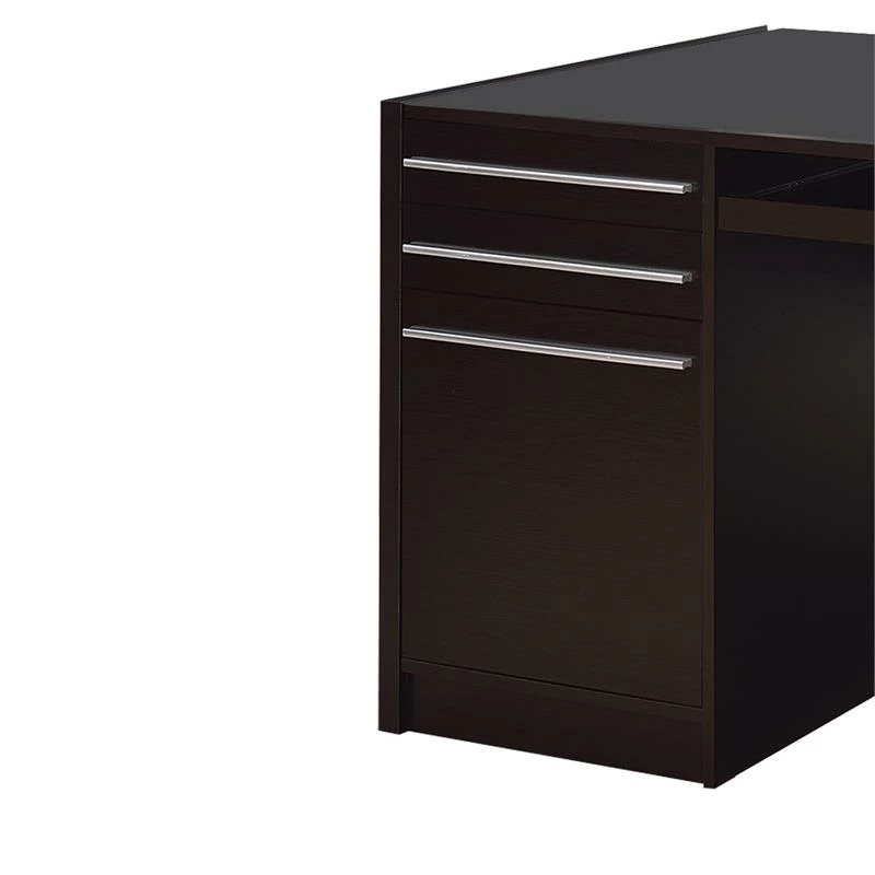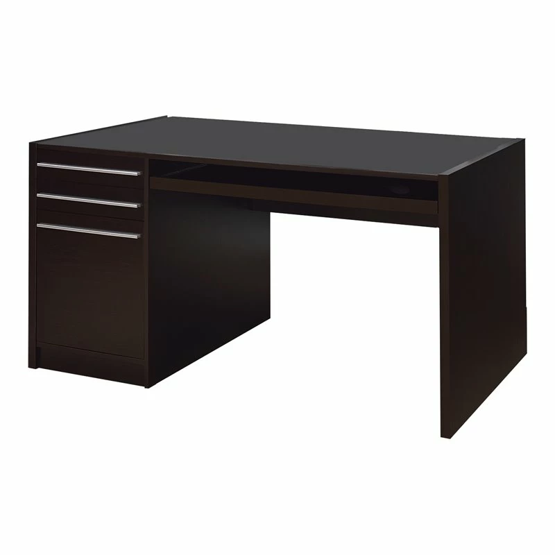 A sleek and stylish piece, this lovingly designed cappuccino (Brown) colored computer desk will outfit your home study in traditional style with its understated elegance. It comes with a power storage compartment with wire management and includes three pull out drawers, a keyboard tray and a sprawling desk surface. what’s not to love?!