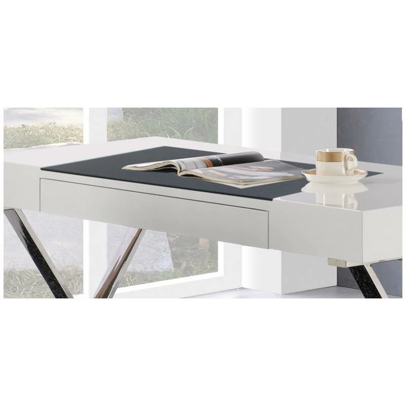 Please Note: Accessories not includedThis sleek modern white computer desk is perfect for studying and writing. This desk comes with slide metal rails, high gloss, and drawers to keep it from clutter free. Its special features a lacquer top, stainless steel legs and a PU piece that prevents your laptop from being overheated and scratches on the desk top.