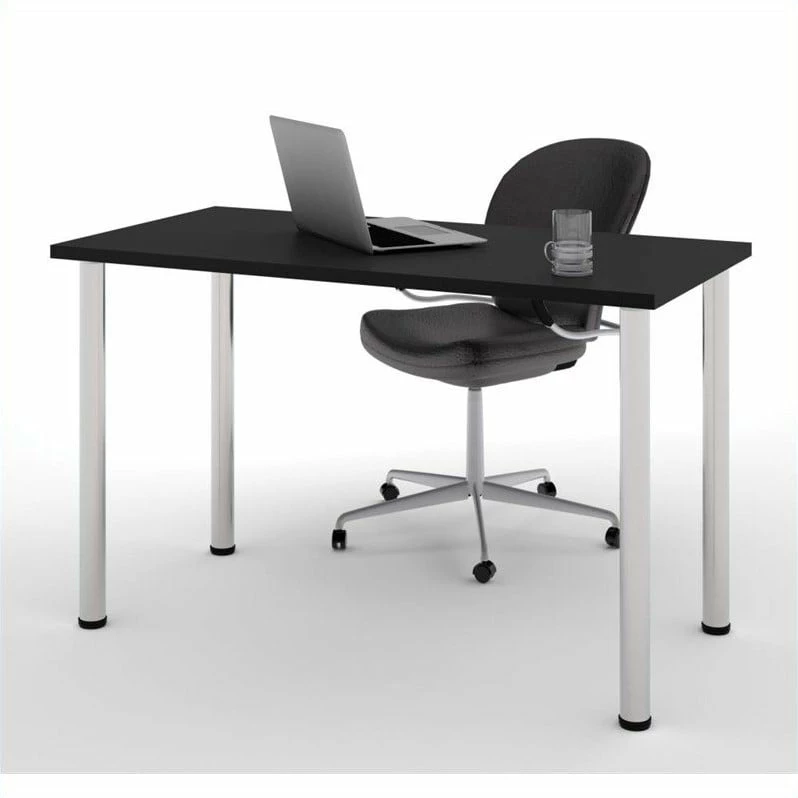Lowest price online On all Bestar Work Surface in Black with Round Metal Leg – 65852-18