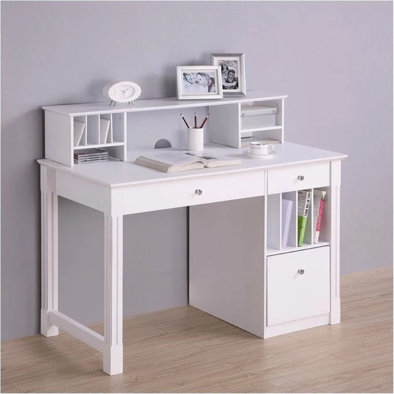 Lowest price online On all Bowery Hill Deluxe Solid Wood Desk with Hutch in White – BH-239483