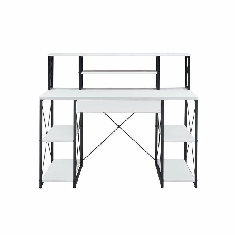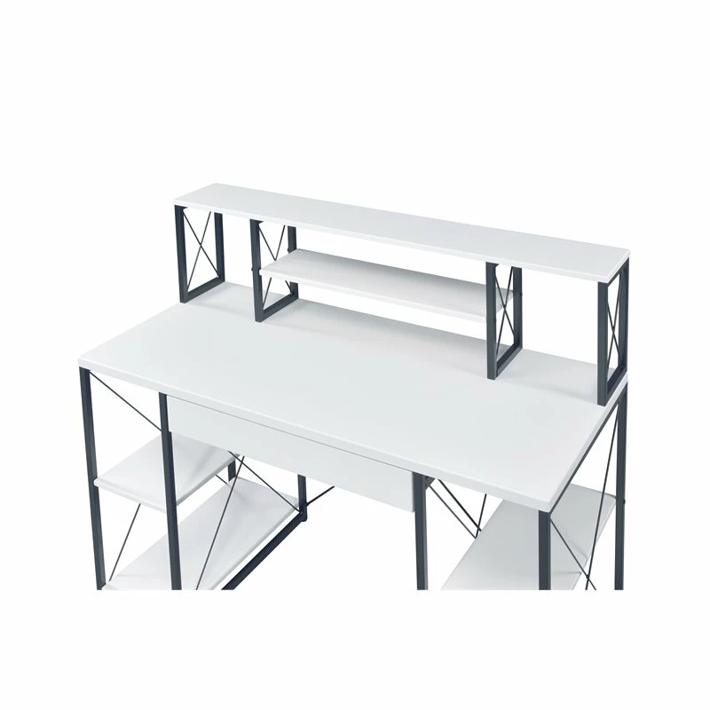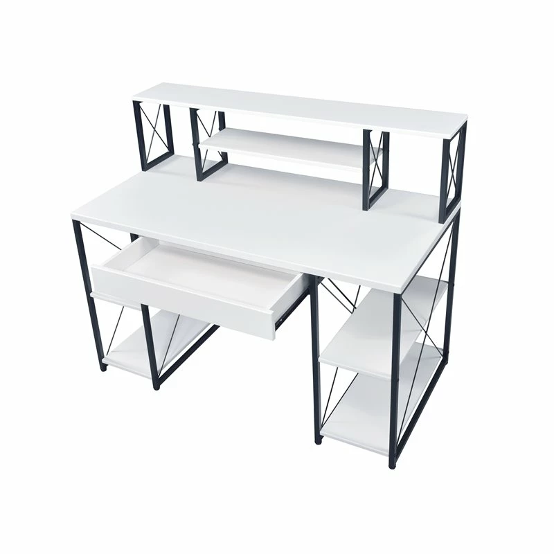 Specifically designed for all purpose, this desk is suitable for study room, bedroom, living room or home office. Crafted with manufactured wood, paper veneer and metal tube, this piece has fixed shelving, hutch and drawer to provide ample space to store office necessities and documents. Available in gray, black and white finish, you can choose the one that match your taste the best.