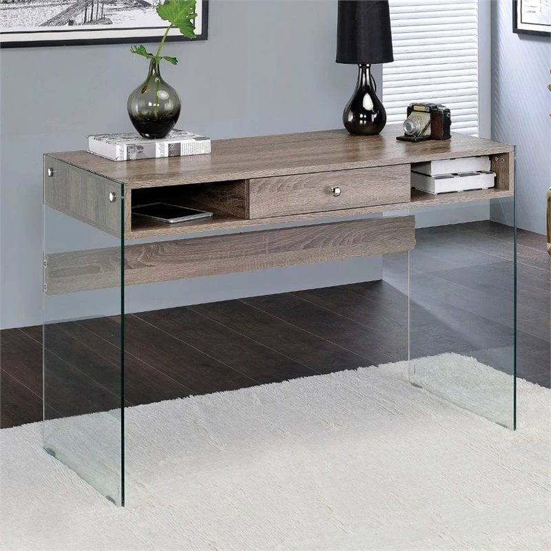 Lowest price online On all Bowery Hill Writing Desk in Clear Glass and Gray Oak – BH-1573681
