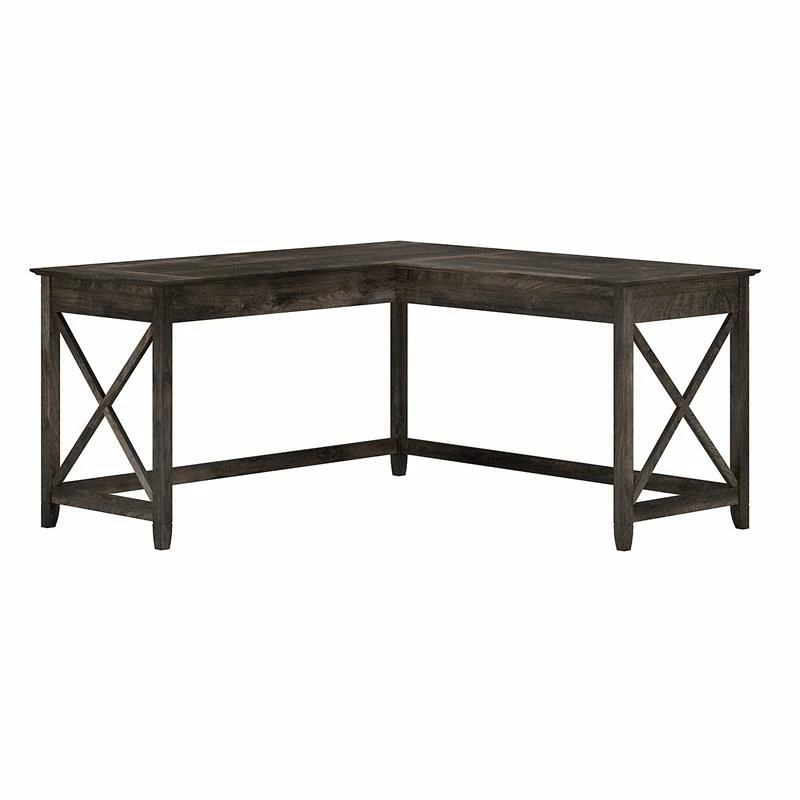 With its practical design and easy going style, the Bush Furniture Key West 60W L Shaped Desk offers an ideal workspace solution for home offices. Save floor space in compact areas by placing the Desk in a corner or make use of the fully finished back to take a prominent position in the middle of the room. At 60W x 60D, the durable work surface is spacious enough to spread out with a computer, paperwork and more when taking on your task of the day or just browsing the web. A sturdy post leg design with unique X pattern accents on the side panels creates a relaxed, open appearance while thoughtful construction and quality materials allow the corner desk to support up to 200 pounds. This L shaped computer desk is tested to meet ANSI/SOHO quality standards for safety and performance and is backed by a 1 Year Manufacturer’s Warranty. See the full collection for coordinating items available. Materials: Engineered wood and Laminates