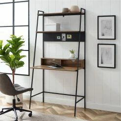 Best deal ๐ FurnitureR Maddie Modern Engineered Wood Computer Desk With Shelves In Brown ๐ฅฐ