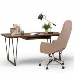 New ๐ Simpli Home Ryder 66″ W SOLID WOOD Modern Writing Office Desk In Natural Aged Brown โ๏ธ