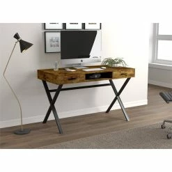 Outlet ๐ฅ Safdie & Co. 47″L 2-Drawers 1-Shelf Metal Computer Desk In Brown Reclaimed Wood ๐งจ