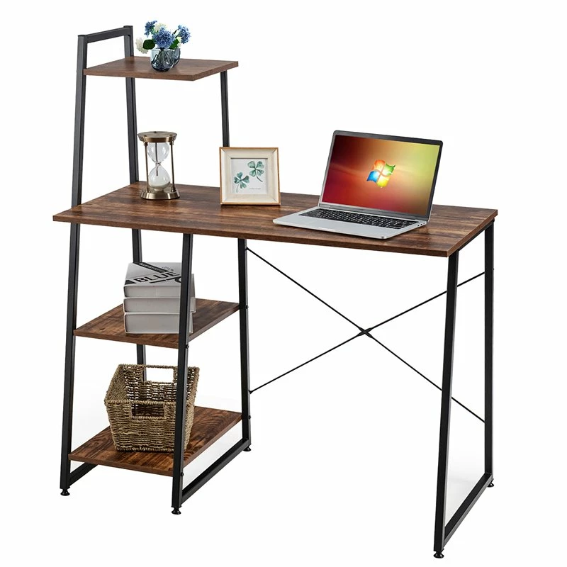 Spacious Tabletop Brings More Convenience: The computer desk is designed with wide enough tabletop to help you keep all sorts of office essentials organized, from laptop to books. Besides orderly working environment, it also features smooth surface to help you keep the wood board clean with less effort. 4-Tier Open Shelves for Added Storage Space: Considering that you may need more storage space which can not only display your beautiful ornaments but also make everything easily accessible, the desk is equipped with 4 tier open-sided shelves. More, the area under the desk is also perfectly sized to meet demands of different people. Sturdy & Stable Metal Structure: Delicately crafted with high quality iron material, the writing desk can withstand higher load bearing capacity while lasting many years of rough use. In addition, it comes with adjustable foot pads, so that you can adjust them according to the condition of floor. In this way, the desk is capable of standing there with great stability. Simple Design for Good Versatility: The study desk of simple elegant trapezoidal design stands out form the ordinary desk, matches well with different home decor, gives your room an aesthetic beauty. Needless to say, whether be served as writing desk for studying or computer desk for gaming and working, it will be of great satisfaction. Easy to Assemble in Short Time: Thanks to the detailed instruction and its simple frame, you will find how to put it together in short time. Less effort required as well, it save you more energy. By the way, it is the solid connection between each part that enables the desk extra stability and lasting durability further.