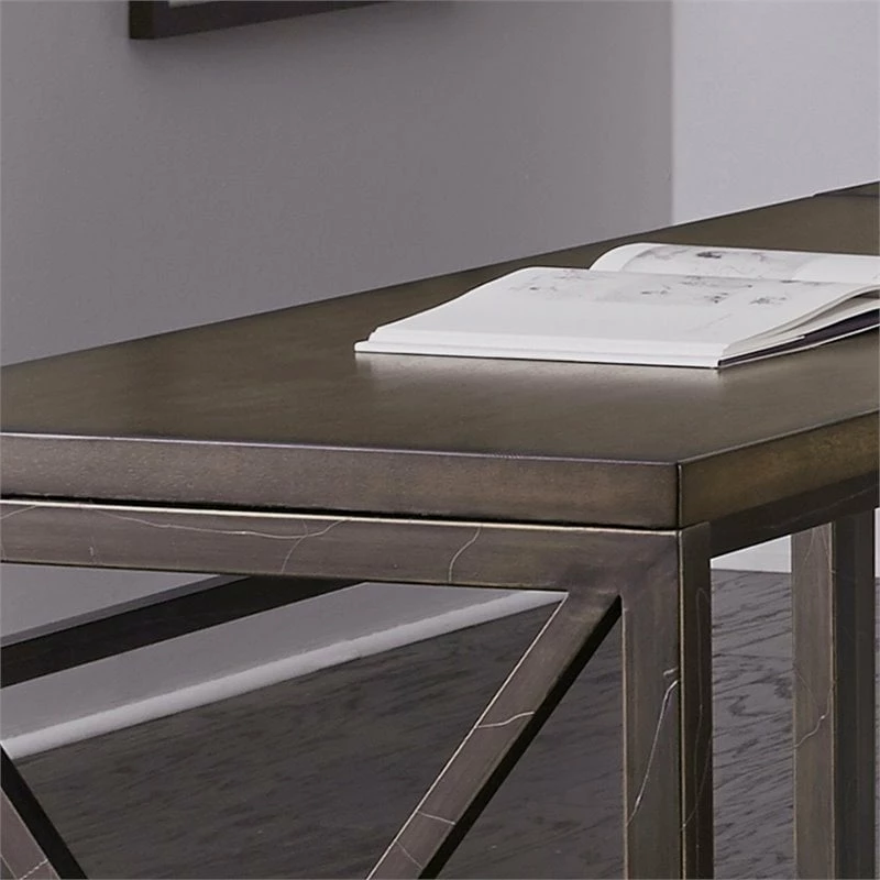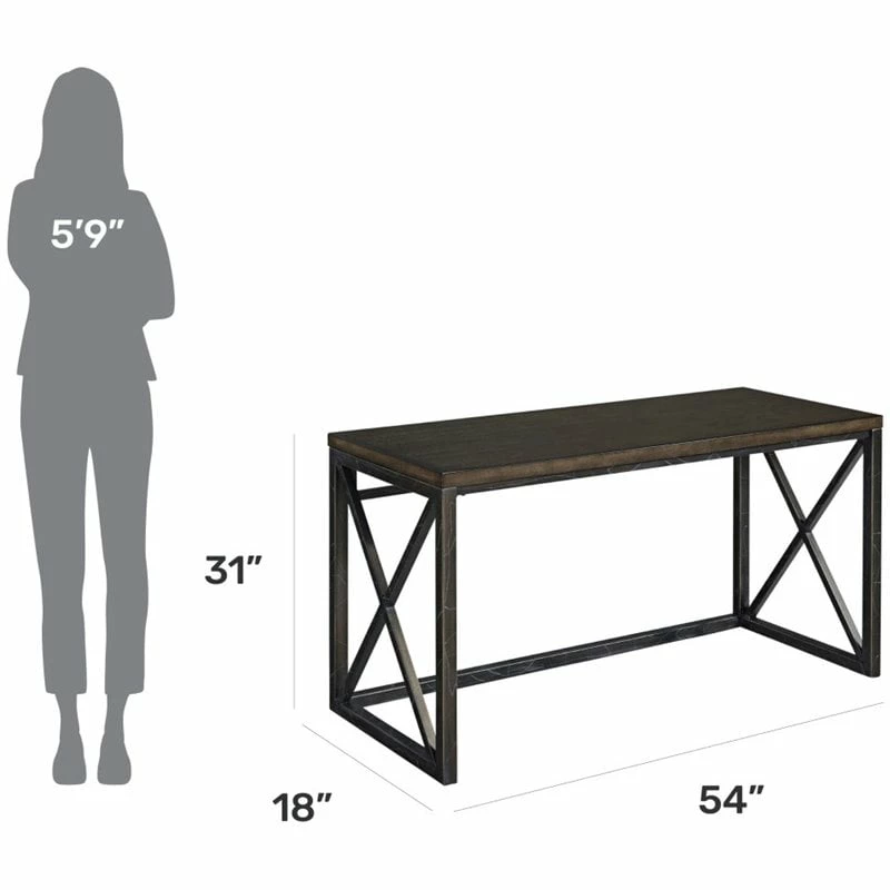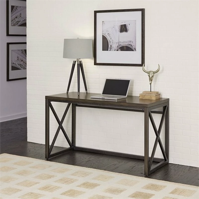 Combine simplicity with a contemporary vision with this Homestyles Xcel Writing Desk. Clean lines and X-frame end panels support a mahogany veneer that inspires your best work. The engineered wood and metal frame deliver a confident foundation that will last for years.