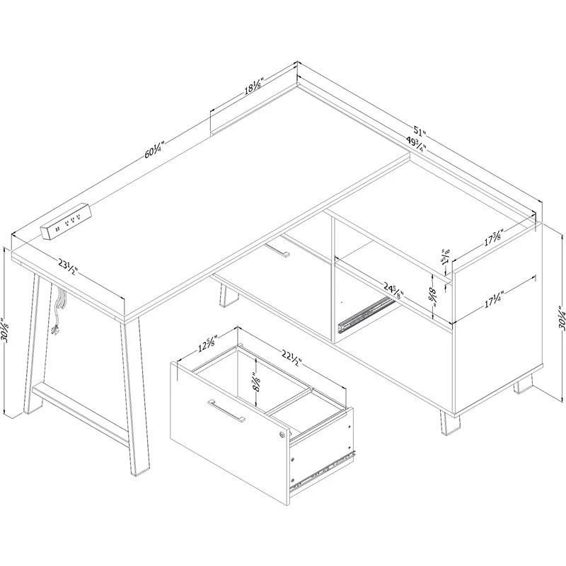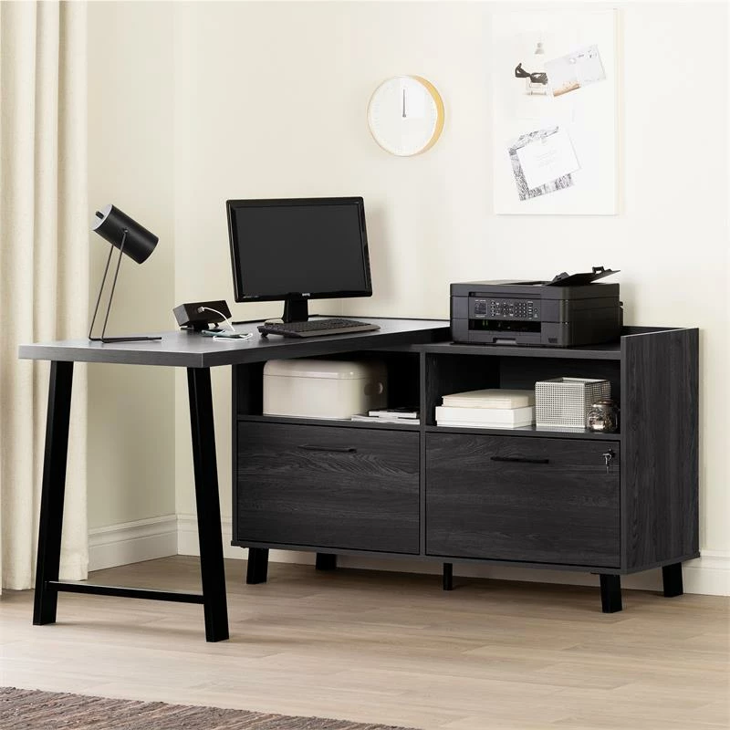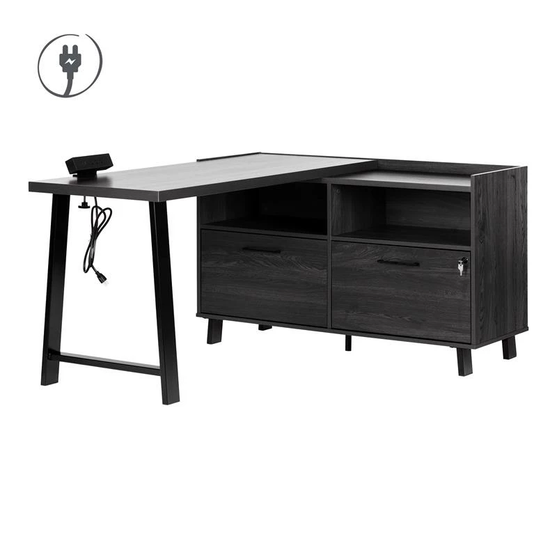 There’s nothing more important than having a work surface that’s adapted to your needs. And you can be sure that’s exactly what you get with this corner desk. The main surface can hold at least a laptop and a second screen, while the space on the file cabinet is ideal for a printer. This piece is also practical, since you’ll have all your devices close at hand! To prevent tangled cords, we’ve even added a power bar with three regular outlets and two USB ports. Another plus: this desk is reversible, so when you’re assembling it, you get to decide on which side you’d like to put the file cabinet. You can also decide how to position it in your room since it’s finished on all sides.
