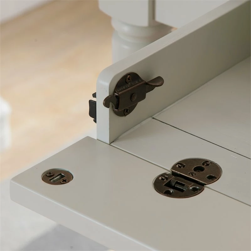 Perfect for laptops or to hide away papers or a desktop keyboard, this delicately scaled desk offers abundant organization assistance in just a tiny space. The drop down front presents the keyboard at a comfortable work height while full extension drawer guides offer the full depth of the drawer as useable space.