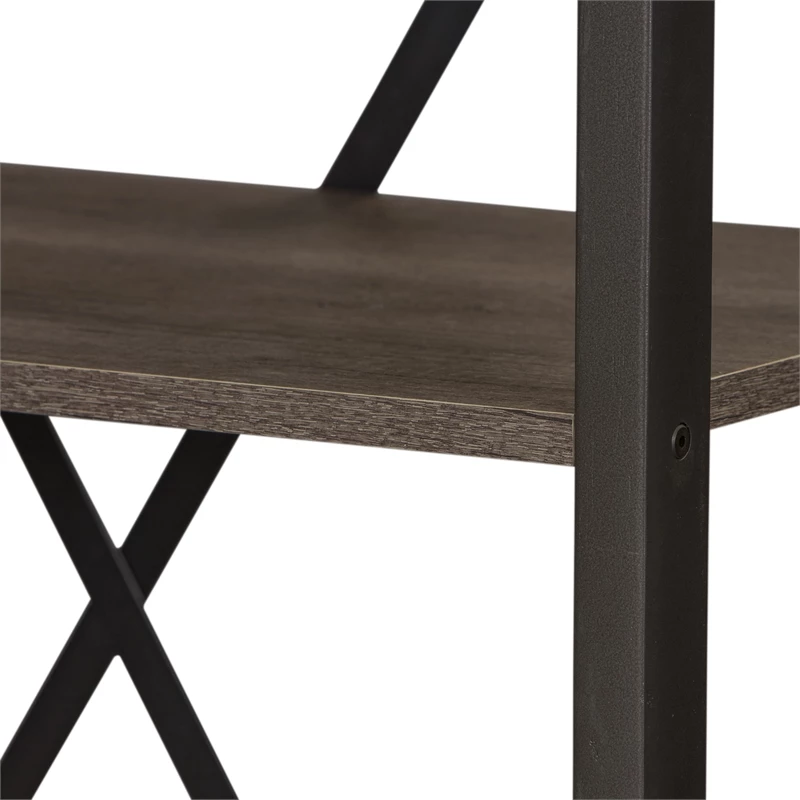 Work from home or your office in style with the Tanners Creek desk and bookcase set. Crafted of a rubberwood solid frame and melamine, this piece features a Greystone finish, open ends finished in a dark pewter metal finish, and a floating shelf design. Bookcase has X metal strip accent, desk bolts to bookcase for an L-shape feel. The melamine is scratch resistant, making this piece sure to last in any home. Tanners Creek offers a natural feeling created by the living space as well as the furnishings that attribute to it.