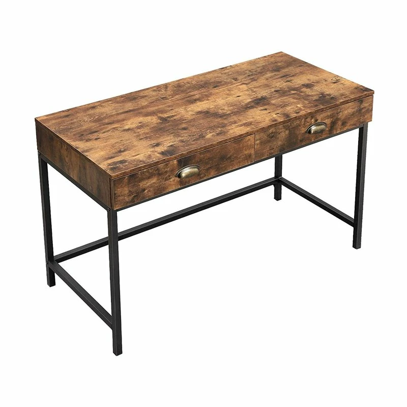Amalgamate your office space by bringing in this industrial style computer desk, featuring spacious storage with 2 drawers facilitated with flush mount pull handles for easy access. Provided with grain details, it rests on tubular frame.