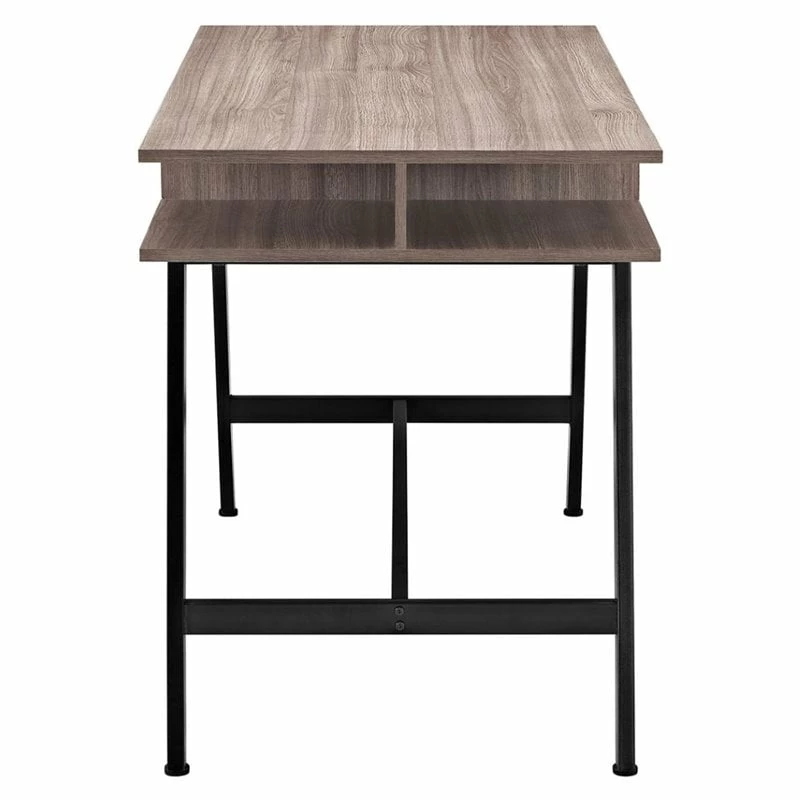 Draw attention to a contemporary writing table that doubles as a study in functionality. Turnabout is a dynamic piece which features four open cubby corners and a pull out drawer with a fifth storage area opposite the drawer on the other side. Turnabout is layered with a natural wood grain patterned melamine finish and is supported by powder coated black steel legs. Turnabout is versatile down to the very bottom of the piece with adjustable foot glides that help keep the table level. Whether you plan to sit alone, or with a friend sitting on the other side of you, Turnabout adds a contemporary style perfect for any contemporary home or office.