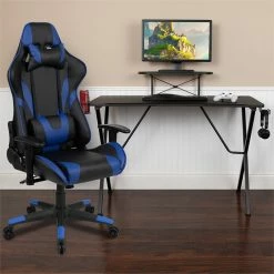 Cheapest ✔️ Flash Furniture Gaming Desk And Racing Swivel Chair Set In Black And Blue 🛒