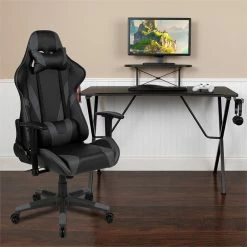 Deals 🎁 Flash Furniture Gaming Desk And Racing Reclining Chair Set In Black And Gray 😉