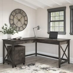 Coupon 🎉 Bush Key West L Shaped Desk With Mobile File Cabinet In Dark Gray – Engineered Wood 🎉