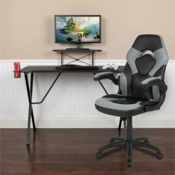 Wholesale ๐ฅ Flash Furniture Gaming Desk And Racing Reclining Chair Set In Black And Gray โ