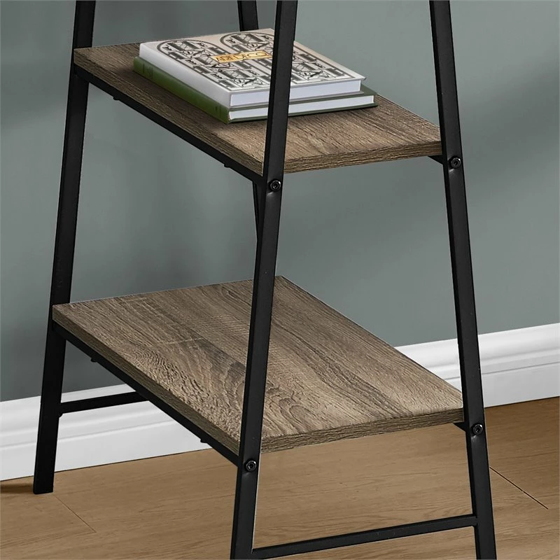 Make your computer desk work as hard as you do. This desk delivers style and functionality from top to bottom, starting with its thick and spacious desktop in a dark taupe wood-look finish. Sawhorse-style legs in black metal are put to work as supports for 4 open shelves that can be used to display books, small storage boxes, or other items. The unique, compact design of this industrial-style writing desk maximizes space and storage potential so that you can maximize productivity.