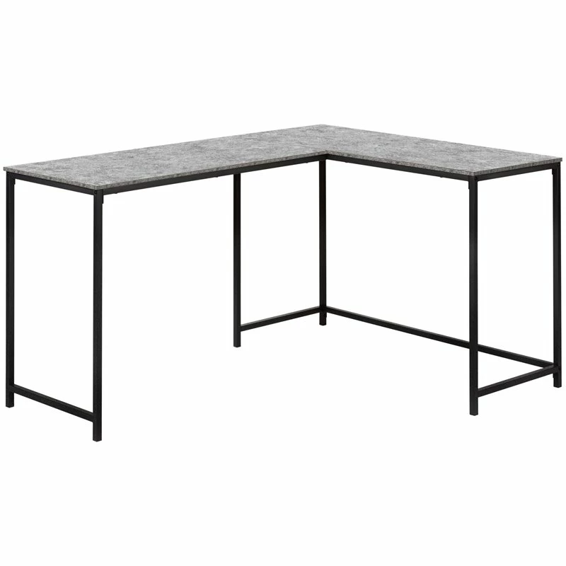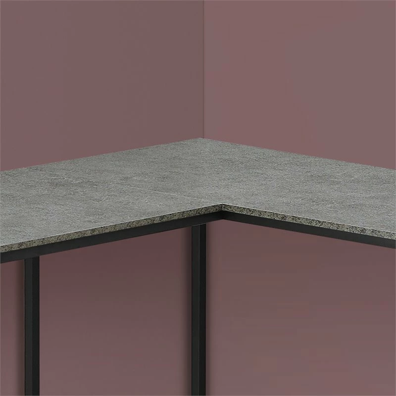 Delivering the best of both worlds, this L-shaped computer desk is both spacious and compact. The large desktop easily accommodates everything you need to be productive and has room to spare for displaying decorative items. Underneath the desktop there’s plenty of space to stretch your legs and place a computer tower. With its L shape, this desk won’t take up too much space when placed in a corner but is finished on all sides so you can position it however you choose in a home office. Both the desktop panels in a grey stone-look finish and the black metal base are slender yet sturdy, giving this desk a modern simplicity that coordinates with most décors.