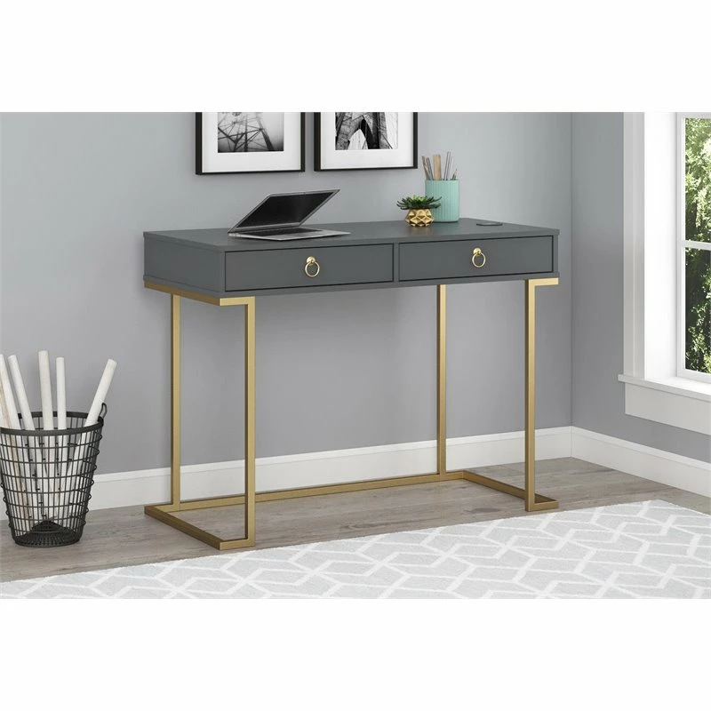 Enhance your space like a boss with the Pemberly Row Writing Desk. The graphite gray finish on the laminated MDF and particleboard pairs well with the gold powder-coated metal legs for a fun and unique look.