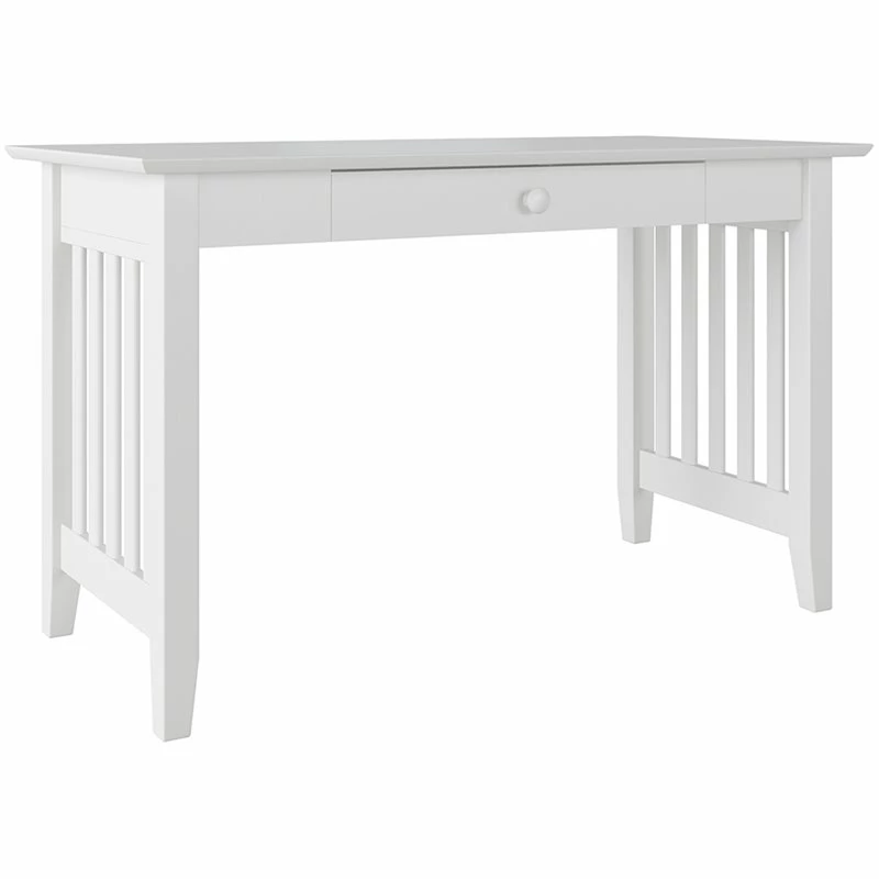 Ample study space and a drawer to store supplies are the hallmarks of our time-tested and inspired desk. Slatted side panels make this design fresh, simple, and stylish. As durable as they are chic, this desk is manufactured using sustainably sourced solid hardwood. The perfect addition to any home office or study space, this desk offers a large work area that comfortably accommodates a laptop or desktop, along with a spacious storage drawer for all of your other work essentials.