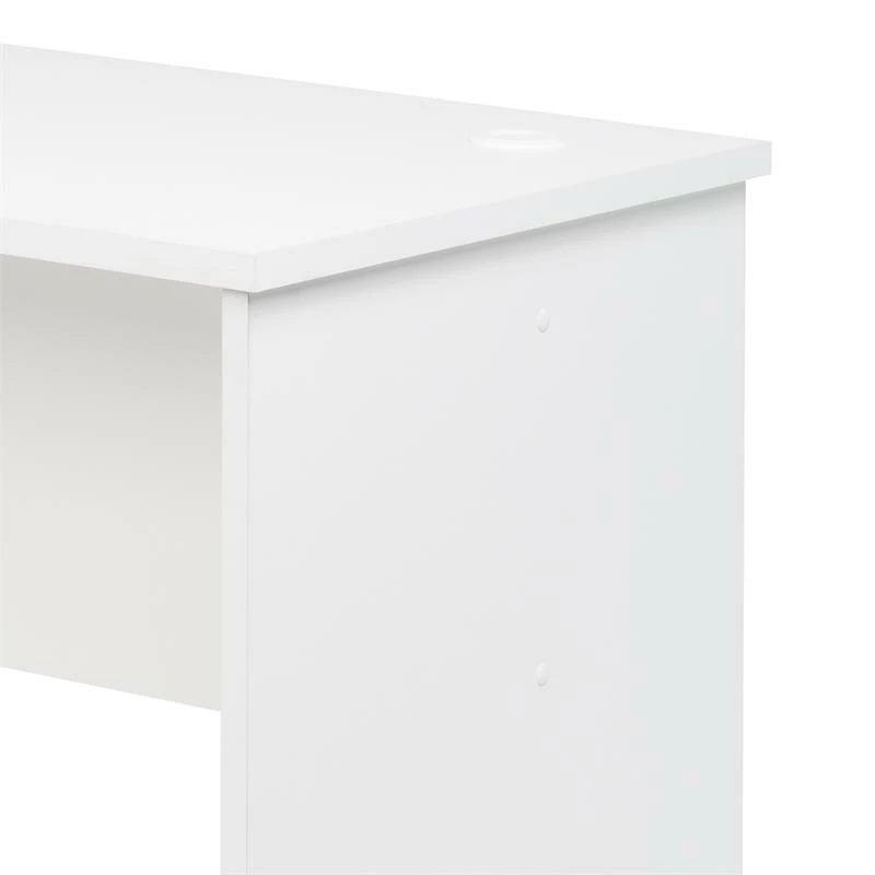 The multipurpose L-Shaped Desk is a versatile addition to a home office or family room and its symmetrical design means it can be installed left or right as your workspace demands. It has been thoughtfully designed to include three wire management locations (one at each end and one at the corner) as well as modesty panels positioned slightly forward to allow access to electrical outlets. Because it is finished on all sides, this workstation will fit snuggly in the corner or can be turned around and positioned like an executive desk. With ample desktop surfaces for dual monitors, the multifunctional L-Desk is also ideal as a gaming center. The corner compartment will fit most CPUs or gaming consoles or can be used for storage. The extra desk space also makes a great place to put a printer or scanner or to simply spread out books for studying.