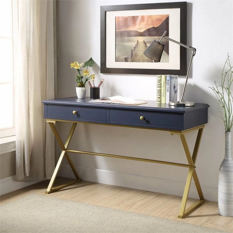 Lowest price online On all Riverbay Furniture Writing Desk in Blue and Gold – RF-1598657