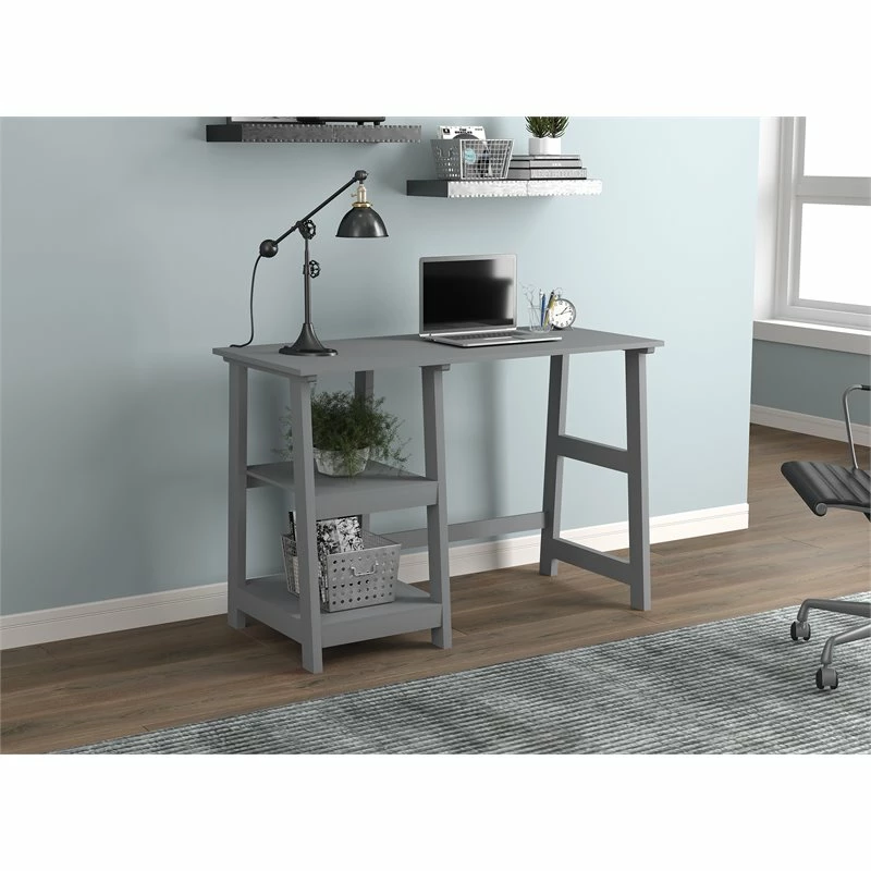 This computer desk is the perfect combination of function, durability, and design in a stylish form. This desk will add a sophisticated modern touch to any office. Featuring 2 open shelves with a large desktop surface to provide plenty of room.