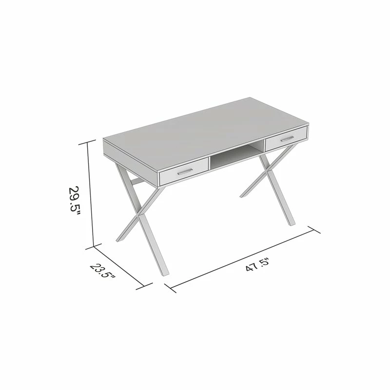 This computer desk is the perfect combination of function, durability, and design in a stylish form. This desk will add a sophisticated modern touch to any office. Featuring 2 drawers and one open shelves with a large desktop surface to provide plenty of room.