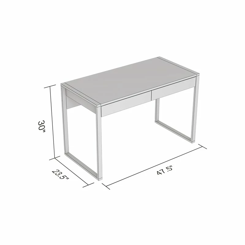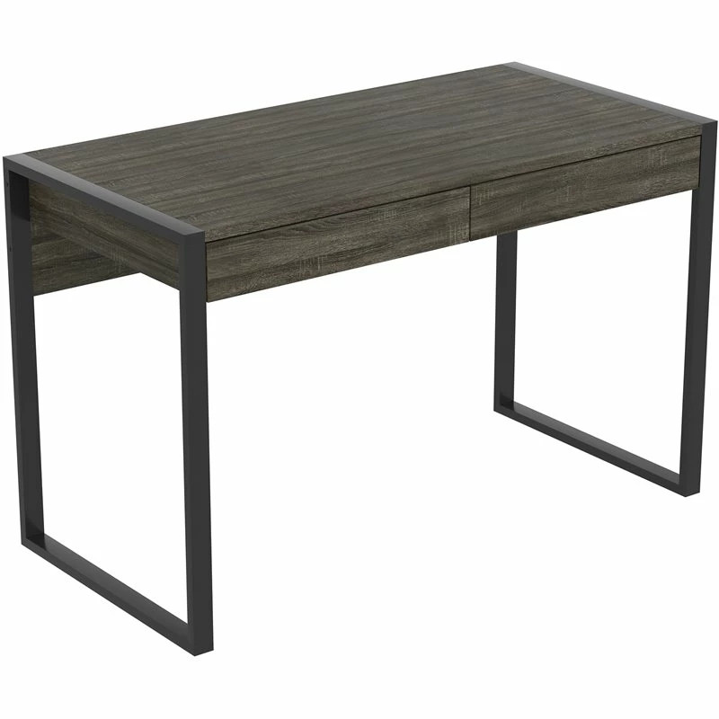 Trendy and modern, this computer desk is the perfect combination of function, durability, and design in a stylish form. With clean lines and sturdy black metal legs, this desk will add a sophisticated industrial/modern touch to any office. Featuring 2 storage drawers to help keep you organized, with a large desktop surface to provide plenty of room for all your hardware and working needs.