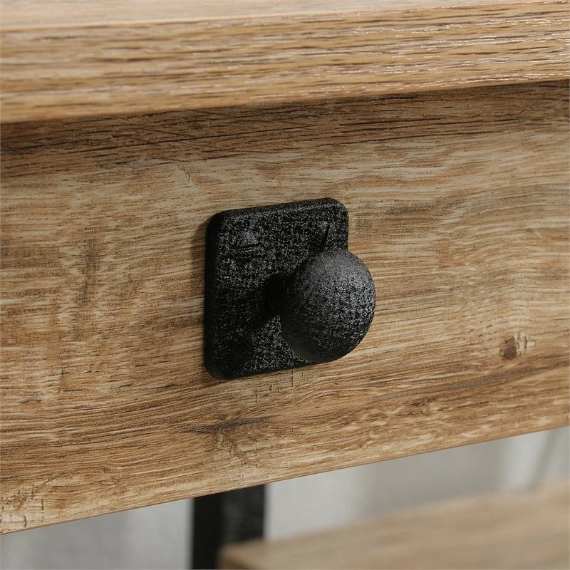 Redefine your workspace. Give your home office space a new look when you add the industrial inspired style and design of this desk from the Steel River® collection. This home office desk offers a spacious top surface that provides you with all the room you need for desk essentials like your laptop, stacks of papers, folders and even an Accent lamp. The Two (2) storage drawers open and close on smooth metal runners for convenient storage of items like pens, envelopes, notepads and other various supplies. There is also an open shelf for additional storage options. This small office desk features a textured, powder coated metal frame and corner Accents along with rear crossbars for stability. Attractive from every angle, it’s finished on all sides for versatile placement in your home. Finished in rustic Milled Mesquite and detailed with bold hardware, this vintage looking desk will give your office space the look you’ve always wanted.