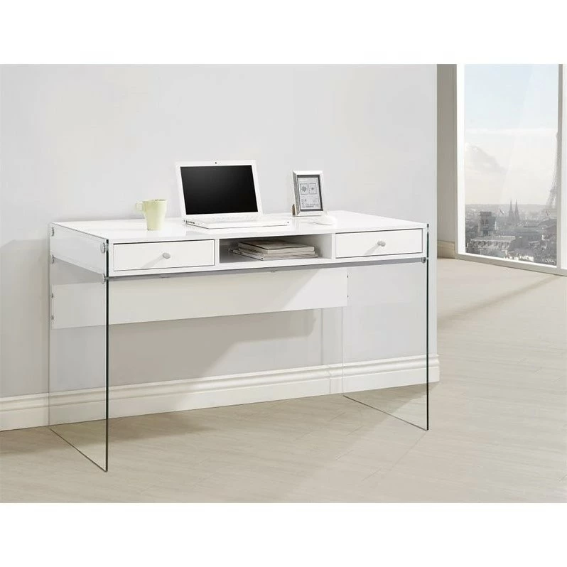 Lowest price online On all Scranton & Co 2 Drawer Modern Computer Desk in Glossy White – SC-1404779
