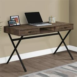 Budget ✔️ Carolina Classics Horatio Metal Computer Desk With Drawers In Elm And Black ✨