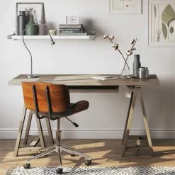 Flash Sale โค๏ธ Inval America Inval Curved Top Writing Desk In Smoke Oak Engineered Wood ๐ฏ