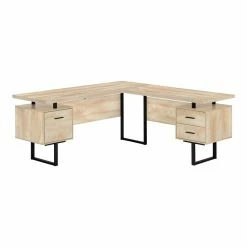 Flash Sale โค๏ธ Monarch 71″ 3-drawer L-shaped Wood Computer Desk In Natural/Black ๐งจ