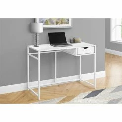 Best reviews of ๐ Monarch 42.25″ 1-drawer Wood Computer Desk With Metal Frame In White ๐