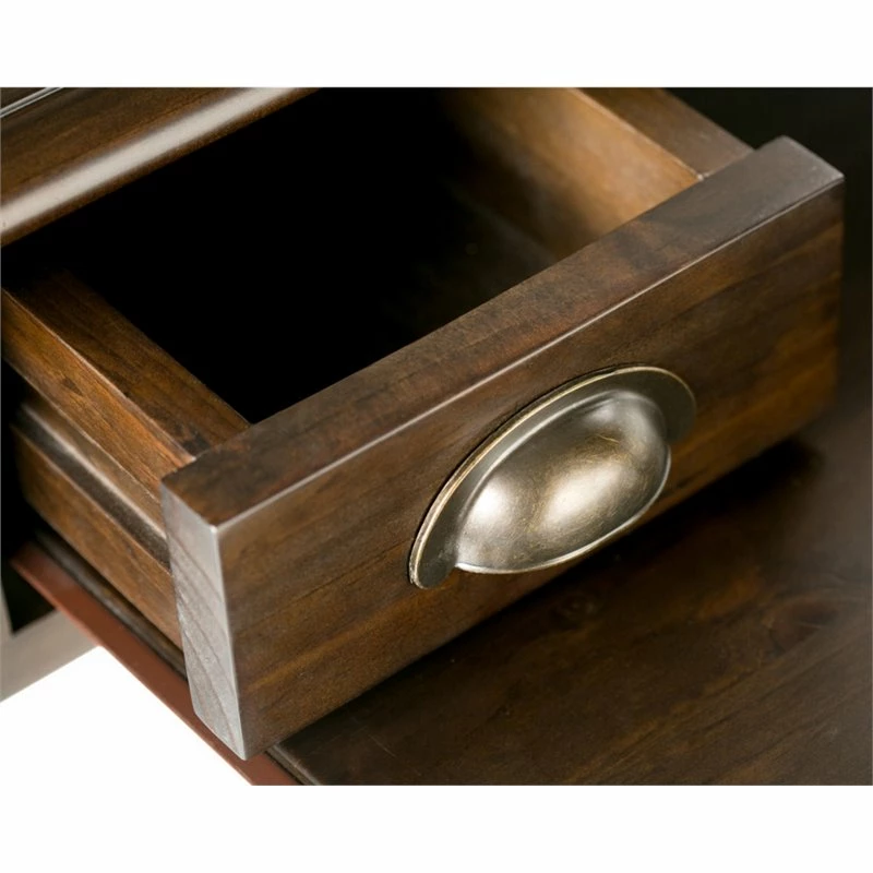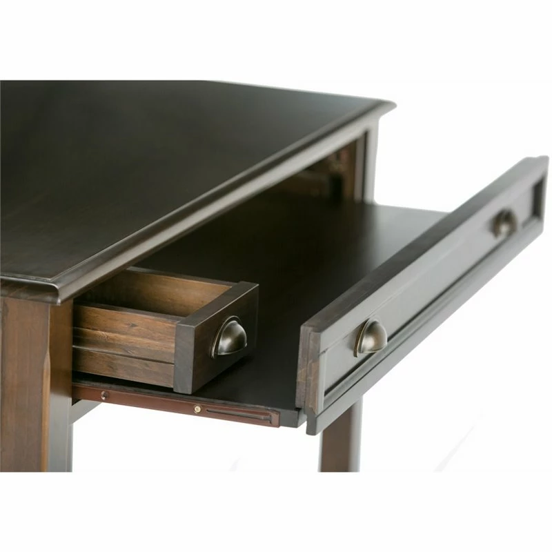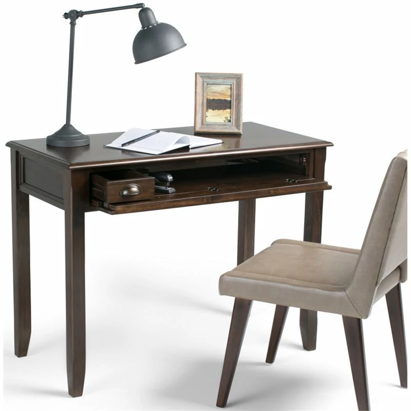 Your home office can be your special place again with this beautiful and functional office desk. Enjoy comfortable computing and work from home or office with the Simpli Home Burlington Desk. Its large surface area is ideal for a monitor, laptop or tablet and leaves enough room for paper, books and other writing accessories. It features a pull-out keyboard tray behind a flip down drawer front. Plus a small hidden drawer on the side to hold stationary keeping the desk top clear of clutter.