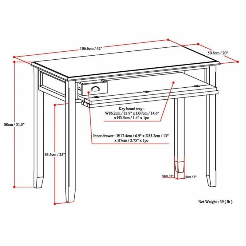 | Home Office Desk | 39, lbs |