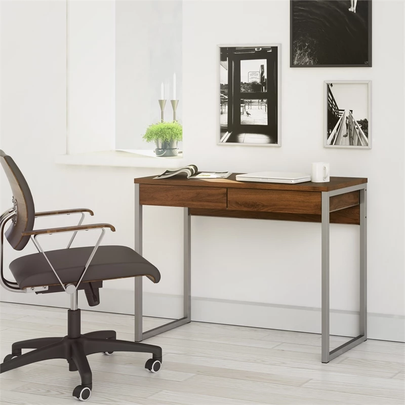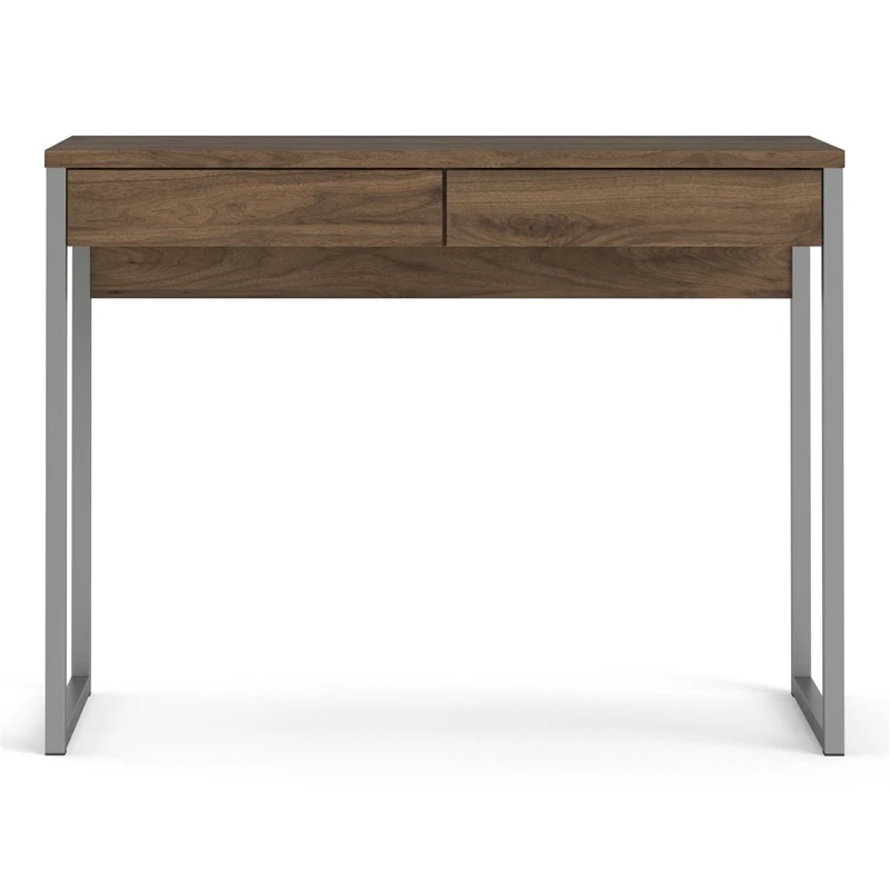 The Walker 2 Drawer Desk is a simple, multi-functional desk. Use as a work desk in your office, a vanity paired with a mirror in the bedroom or as a console table in the entryway. Featuring metal legs and two drawers for storage, this desk suits every home! The drawers are backed with metal glides with safety stops and the desk has a foil finish that provides durability and protects against stains, smears, and fading.