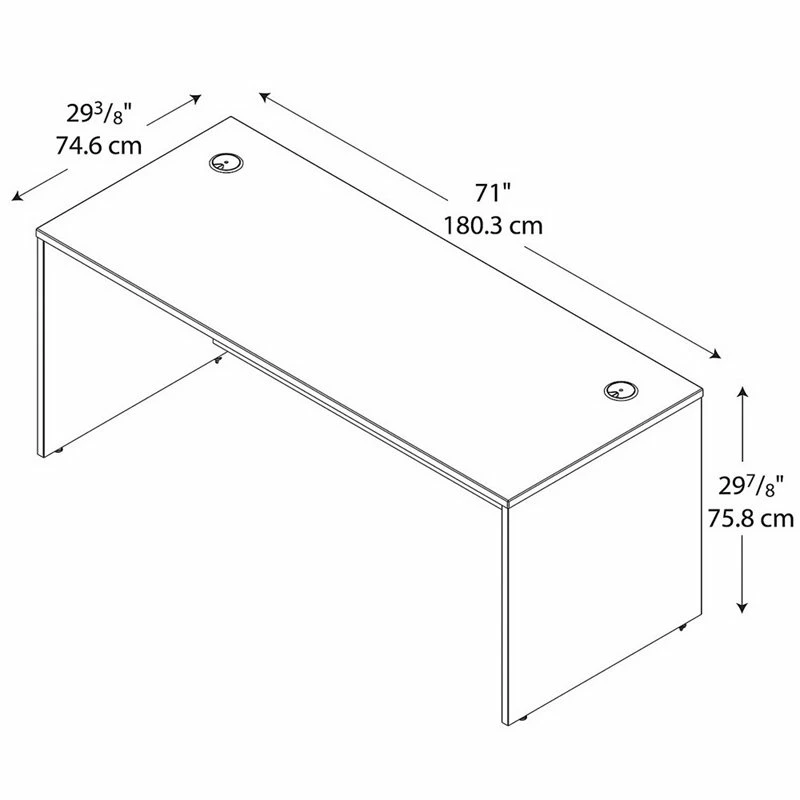 Get a wide work surface and opportunities for expansion with the UrbanPro 72W x 30D Office Desk. Spread out with your paperwork, computer, phone and more on the rugged thermally fused laminate surface while concealing your cables in wire management grommets for a clutter-free work area. Depend on continued quality with a heavy-duty design, thick end panels and tough edge banding. Use the Office Desk by itself or expand your workspace with matching products to form an L or U Shaped configuration. Complete your office by adding a Hutch, Mobile File Cabinets, Keyboard Tray or Pencil Drawer (all sold separately). Extended modesty panels and clean lines make a lasting impression. The options are endless with . This affordable furniture boasts quality craftsmanship to withstand the rigors of a 40-plus hour work week and comes with a 10 Year Warranty. Seven stylish finishes blend seamlessly in any environment. Multiple layout options meet the needs of numerous workspaces, from the private or home office to reception areas and conference rooms. evolves with your preferences, allowing you to reconfigure your workspace as required with a complete line of coordinated commercial office furniture.