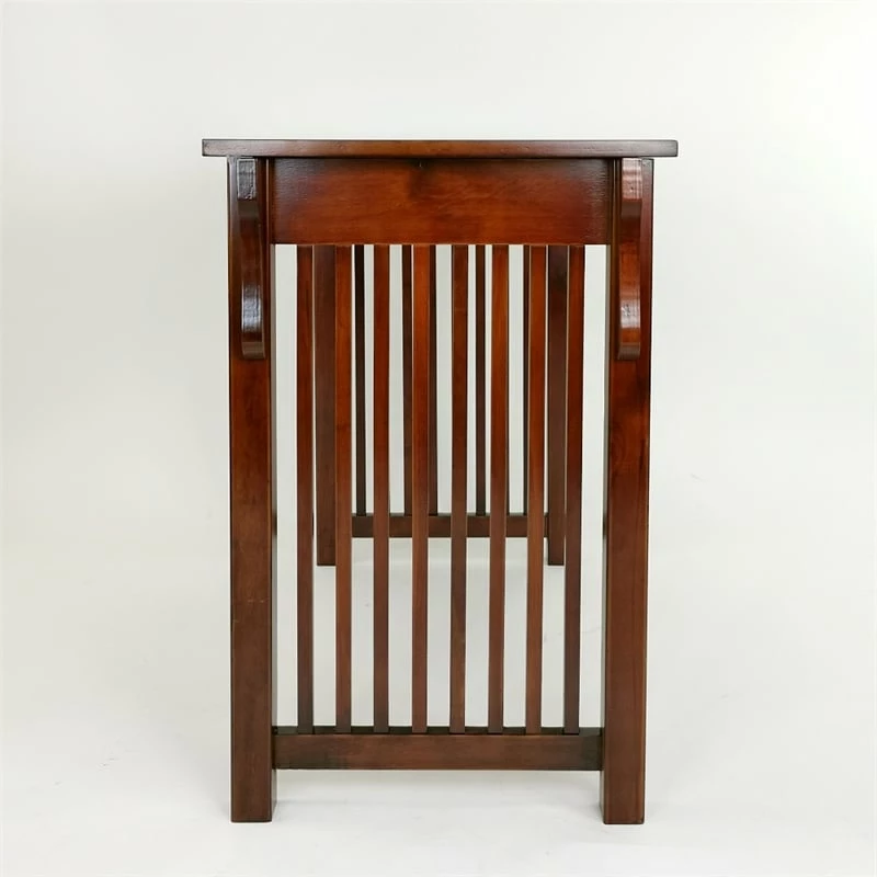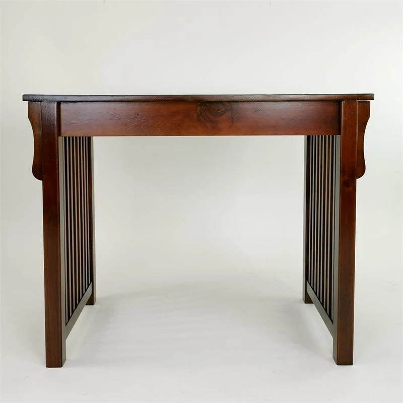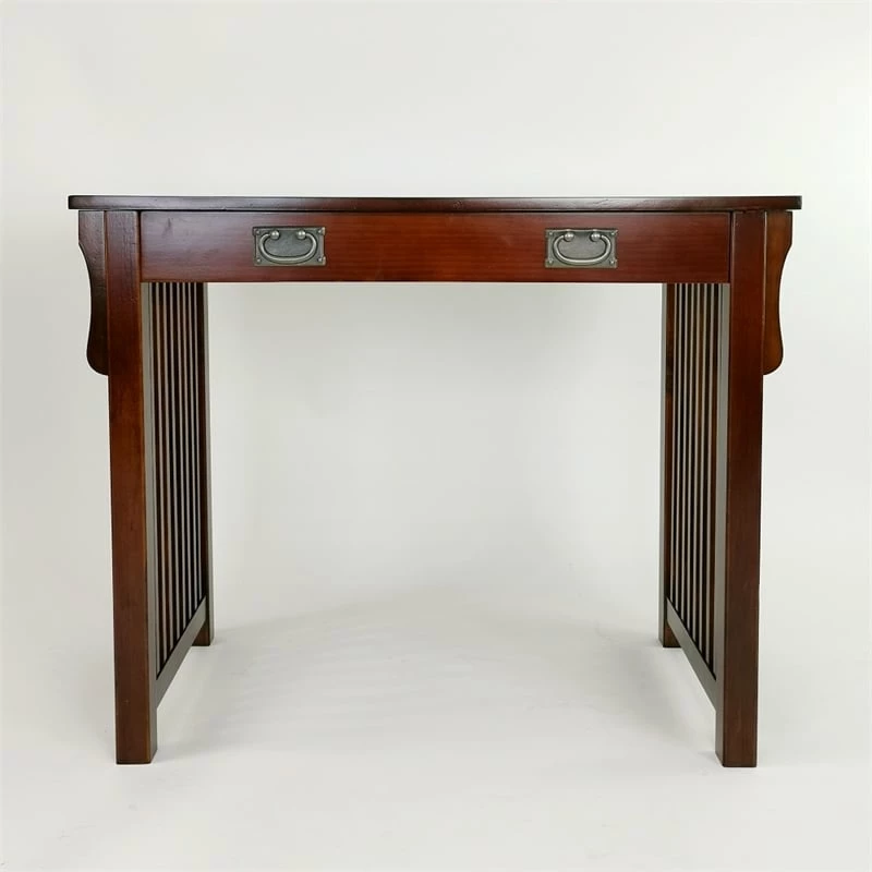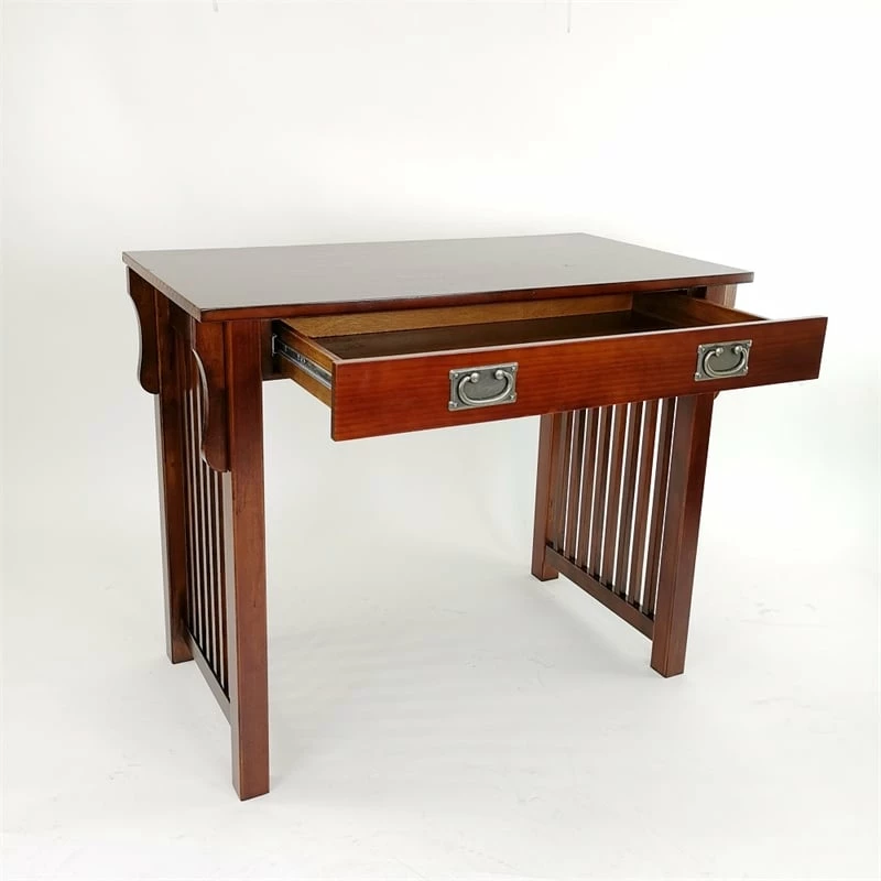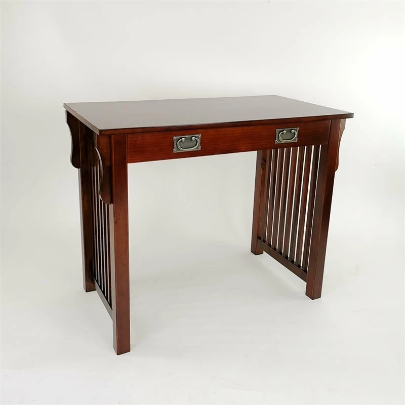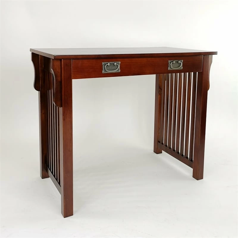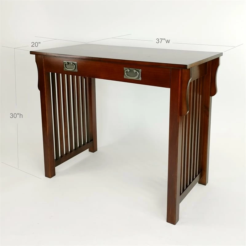 Bring this mission style writing desk into your home for a great place to study or work. This desk works seamlessly with any home décor and in any room. With its clean line design the desk lines up perfectly against any wall or behind a sofa that has limited space while the drawer is a wonderful place to stash away a keyboard, paper, pens, pencils and all work-related items. This easy assemble table will blend and compliment current décor throughout your home. The wood construction assures a long lasting, sturdy table for years to come.